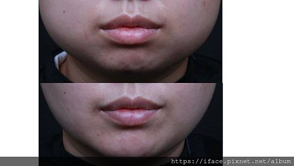 2年前放置過卡麥拉下巴,但是仍覺得下巴很寬,找我再補救,針對這樣問題,我用無痕針孔技術,利用微脂注射技術把小顆粒脂肪打入,增加從下唇到下巴底端軟組織,因為微脂顆粒存活度 高,手術後讓顧客很滿意。
