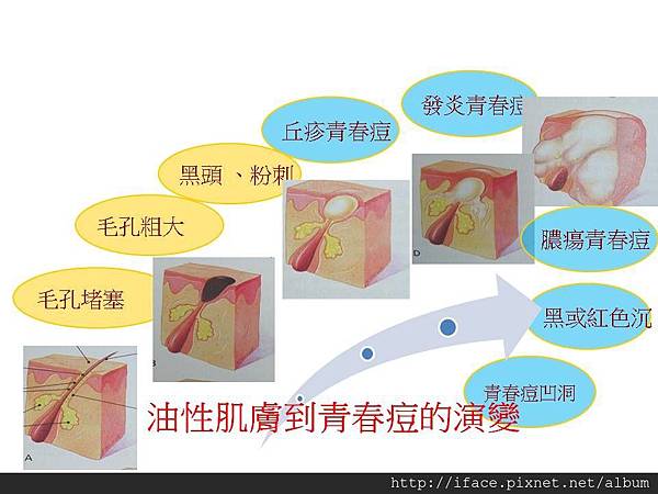 1. 毛囊開口角化異常,造成毛囊阻塞。